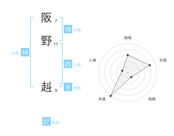 阪野 赳さんの総格は27画の3点!