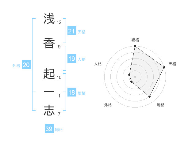 浅香 起一志さんを姓名の画数から五運を鑑定