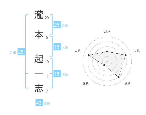 瀧本 起一志さんの天格は25画の4点