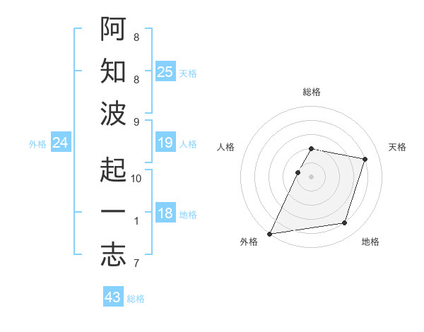 阿知波 起一志さんを姓名の画数から五運を鑑定