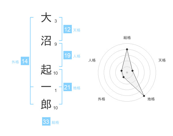 大沼 起一郎さんを姓名の画数から五運を鑑定