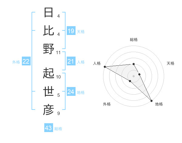 日比野 起世彦さんを姓名の画数から五運を鑑定