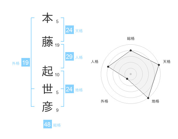 本藤 起世彦さんを姓名の画数から五運を鑑定