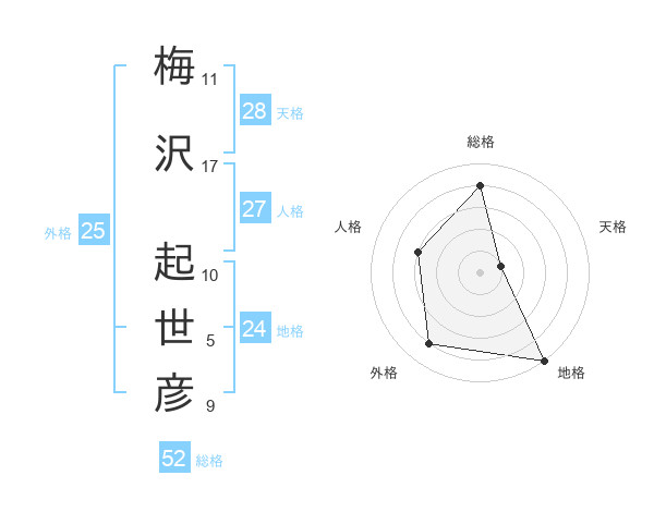 梅沢 起世彦さんの総格は52画の4点!