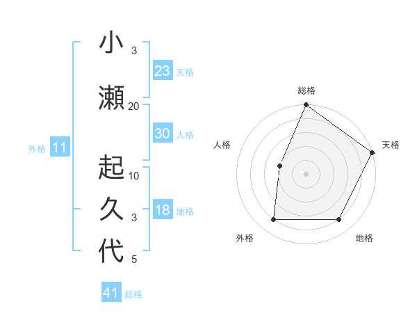 小瀬 起久代さんを姓名の画数から五運を鑑定