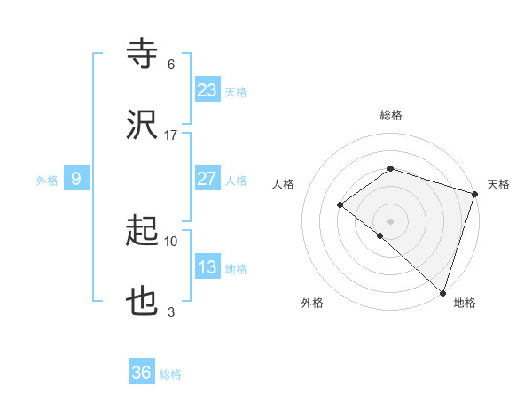 寺沢 起也さんの天格は23画の5点!