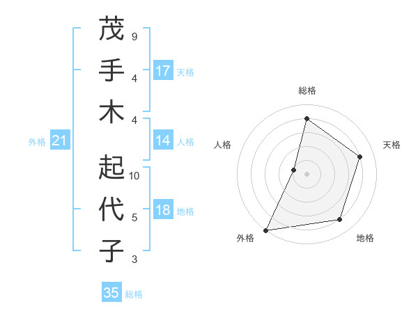 茂手木 起代子さんの天格は17画の4点!