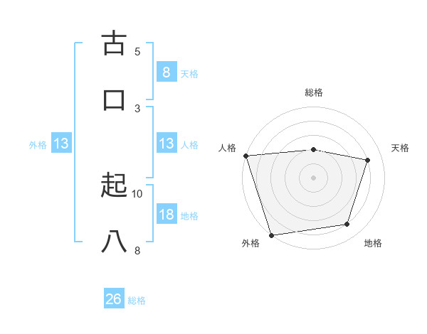 古口 起八さんの総格は26画の2点!