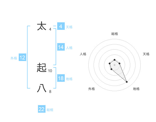太 起八さんの総格は22画の1点!