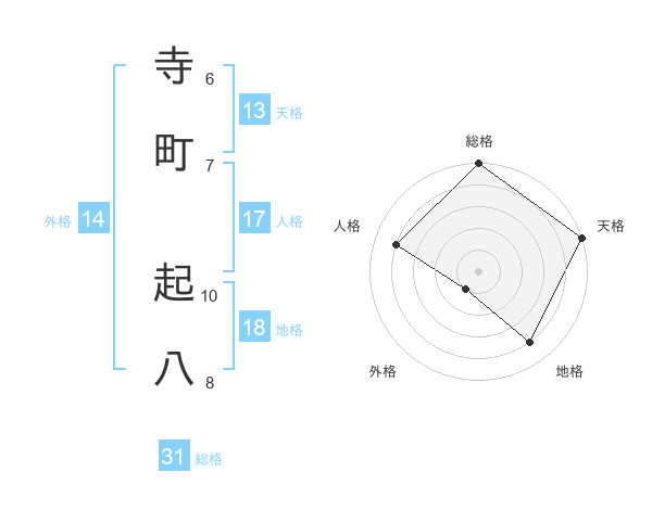 寺町 起八さんの総格は31画の5点!