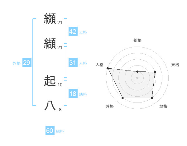 纐纈 起八さんを姓名の画数から五運を鑑定