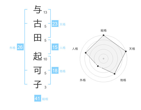 与古田 起可子さんを姓名の画数から五運を鑑定