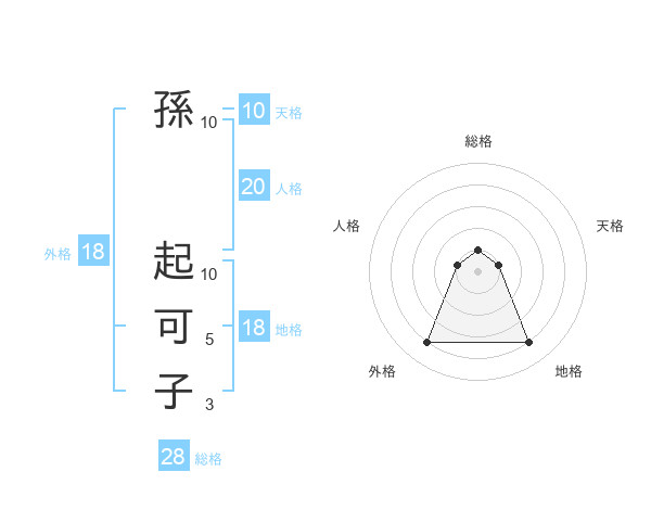 孫 起可子さんの外格は18画の4点!