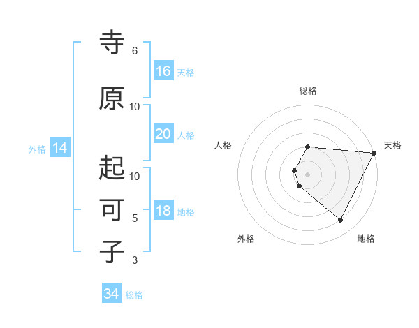 寺原 起可子さんを姓名の画数から五運を鑑定