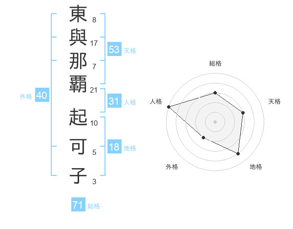 東與那覇 起可子さんを姓名の画数から五運を鑑定