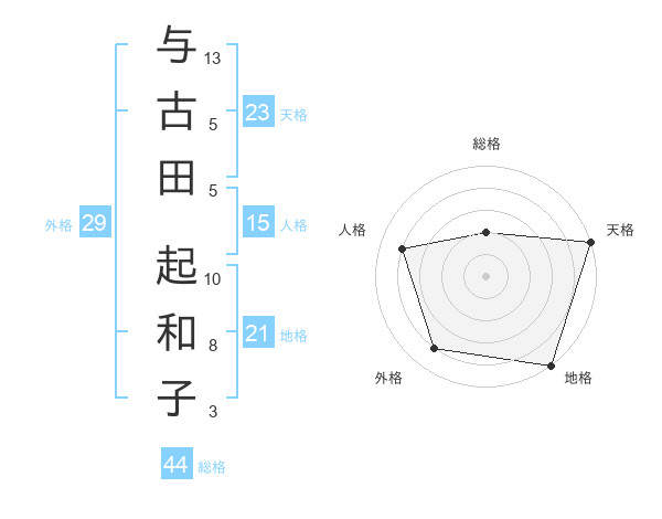 与古田 起和子さんを姓名の画数から五運を鑑定
