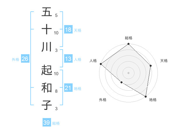 五十川 起和子さんを姓名の画数から五運を鑑定