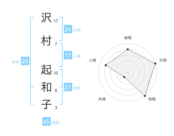 沢村 起和子さんを姓名の画数から五運を鑑定