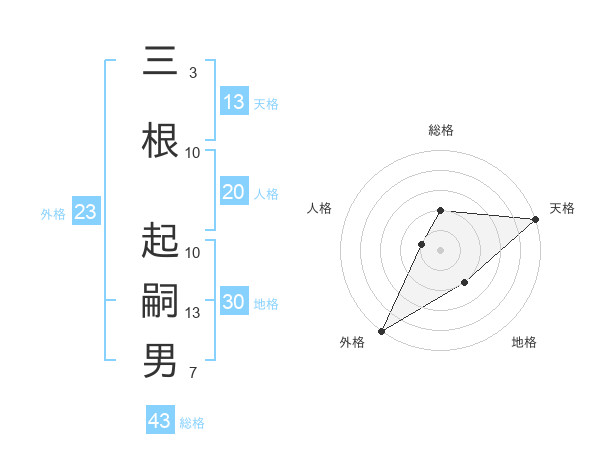 三根 起嗣男さんを姓名の画数から五運を鑑定