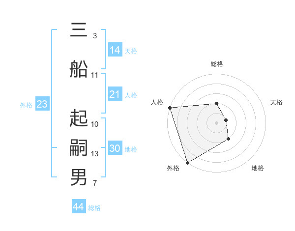三船 起嗣男さんの総格は44画の2点!
