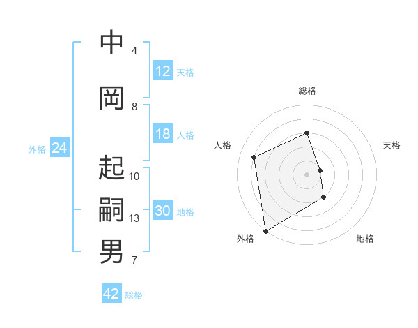 中岡 起嗣男さんを姓名の画数から五運を鑑定