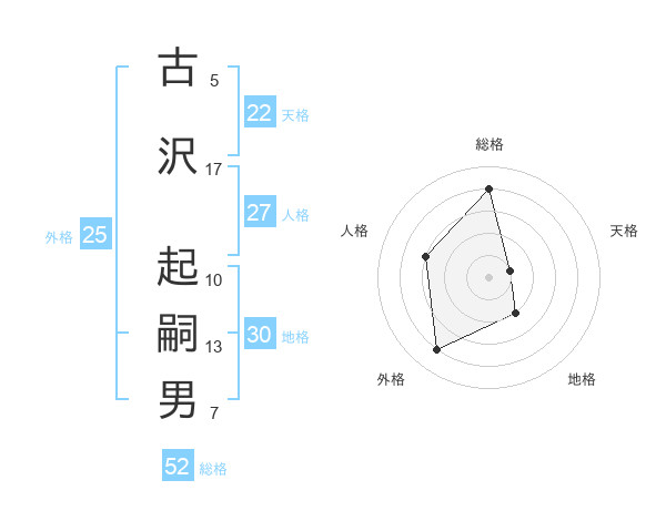 古沢 起嗣男さんの総格は52画の4点!