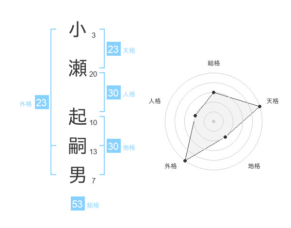 小瀬 起嗣男さんを姓名の画数から五運を鑑定