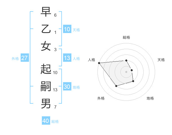 早乙女 起嗣男さんを姓名の画数から五運を鑑定