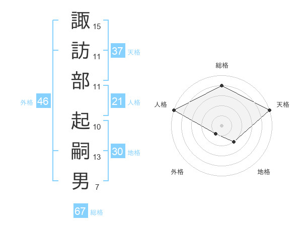 諏訪部 起嗣男さんの天格は37画の5点!