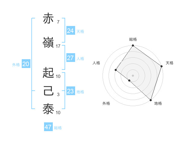 赤嶺 起己泰さんの総格は47画の5点!