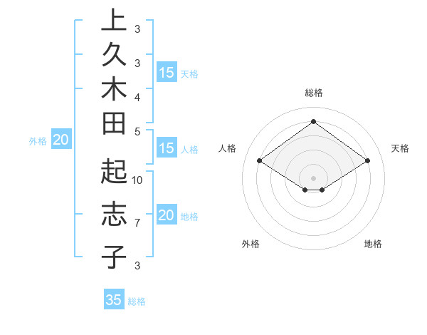 上久木田 起志子さんの天格は15画の4点