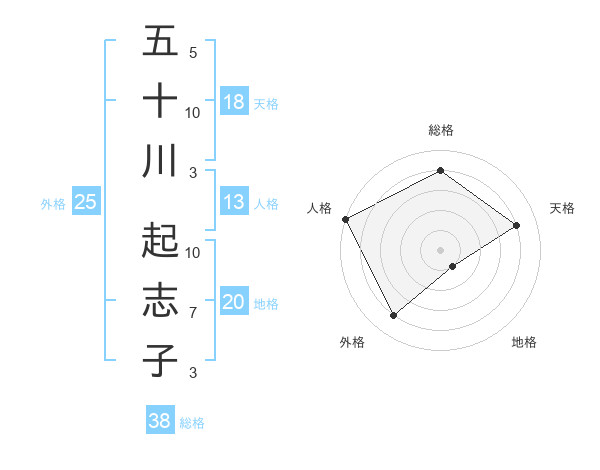 五十川 起志子さんを姓名の画数から五運を鑑定