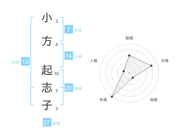 小方 起志子さんの外格は13画の5点