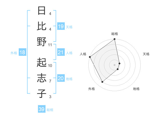 日比野 起志子さんを姓名の画数から五運を鑑定