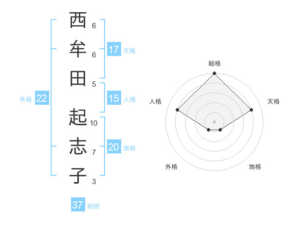 西牟田 起志子さんを姓名の画数から五運を鑑定