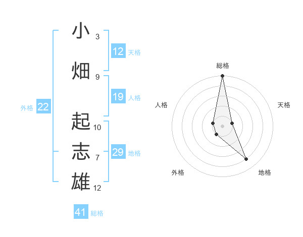 小畑 起志雄さんの総格は41画の5点!