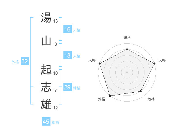 湯山 起志雄さんを姓名の画数から五運を鑑定