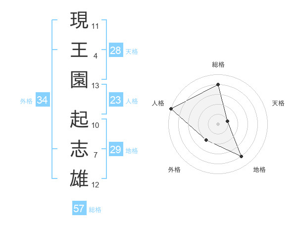 現王園 起志雄さんの総格は57画の4点!