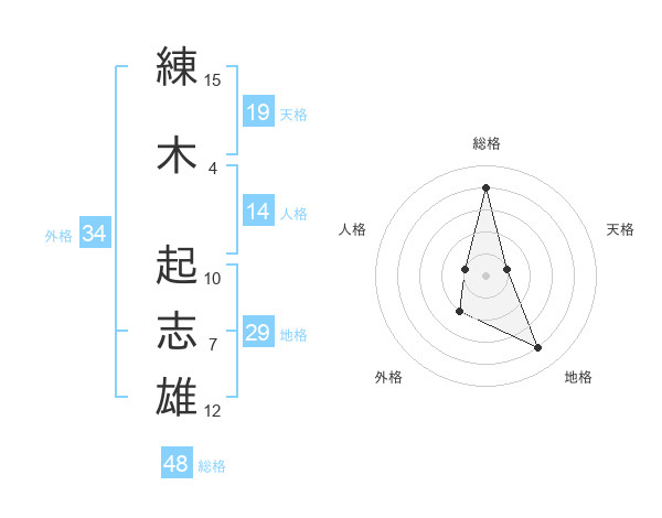 練木 起志雄さんの総格は48画の4点!