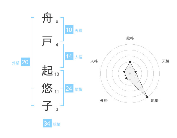 舟戸 起悠子さんの総格は34画の2点!