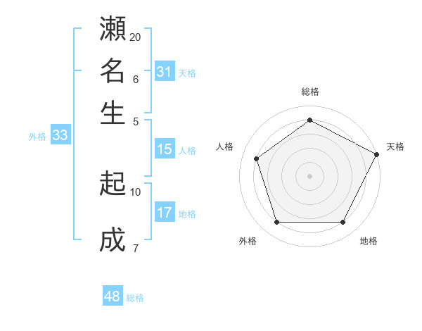 瀬名生 起成さんを姓名の画数から五運を鑑定