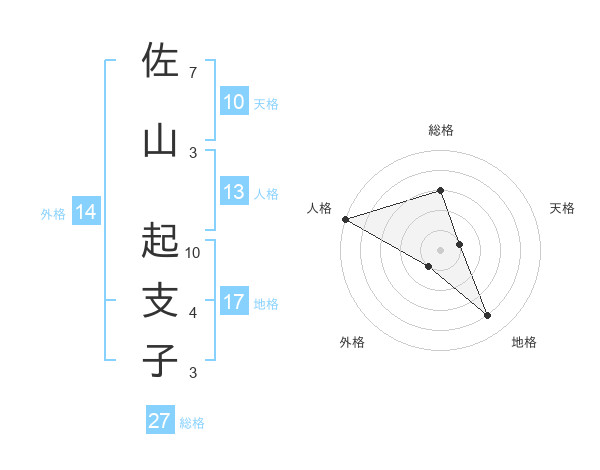 佐山 起支子さんを姓名の画数から五運を鑑定