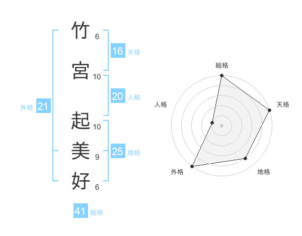 竹宮 起美好さんの総格は41画の5点!