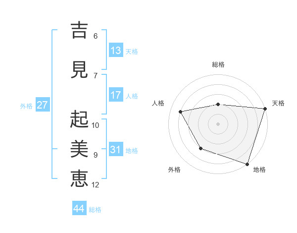 吉見 起美恵さんを姓名の画数から五運を鑑定