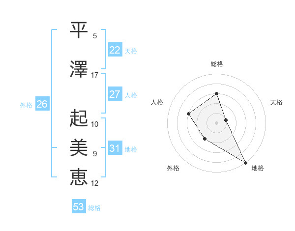 平澤 起美恵さんの総格は53画の3点!