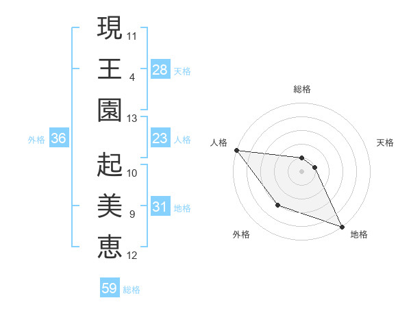 現王園 起美恵さんを姓名の画数から五運を鑑定