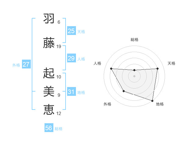 羽藤 起美恵さんの地格は31画の5点!