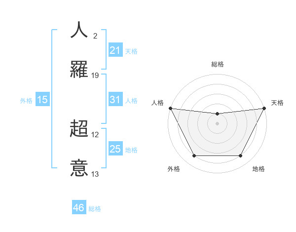 人羅 超意さんの人格は31画の5点!