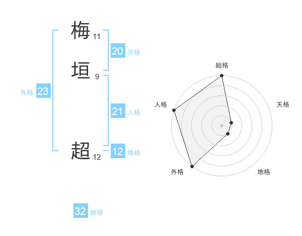 梅垣 超さんの外格は23画の5点!