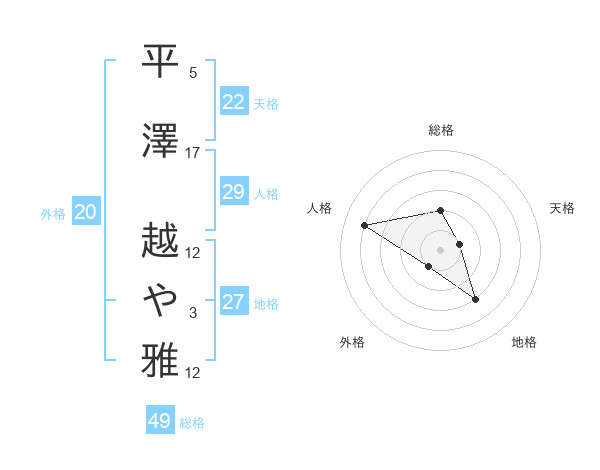 平澤 越や雅さんを姓名の画数から五運を鑑定